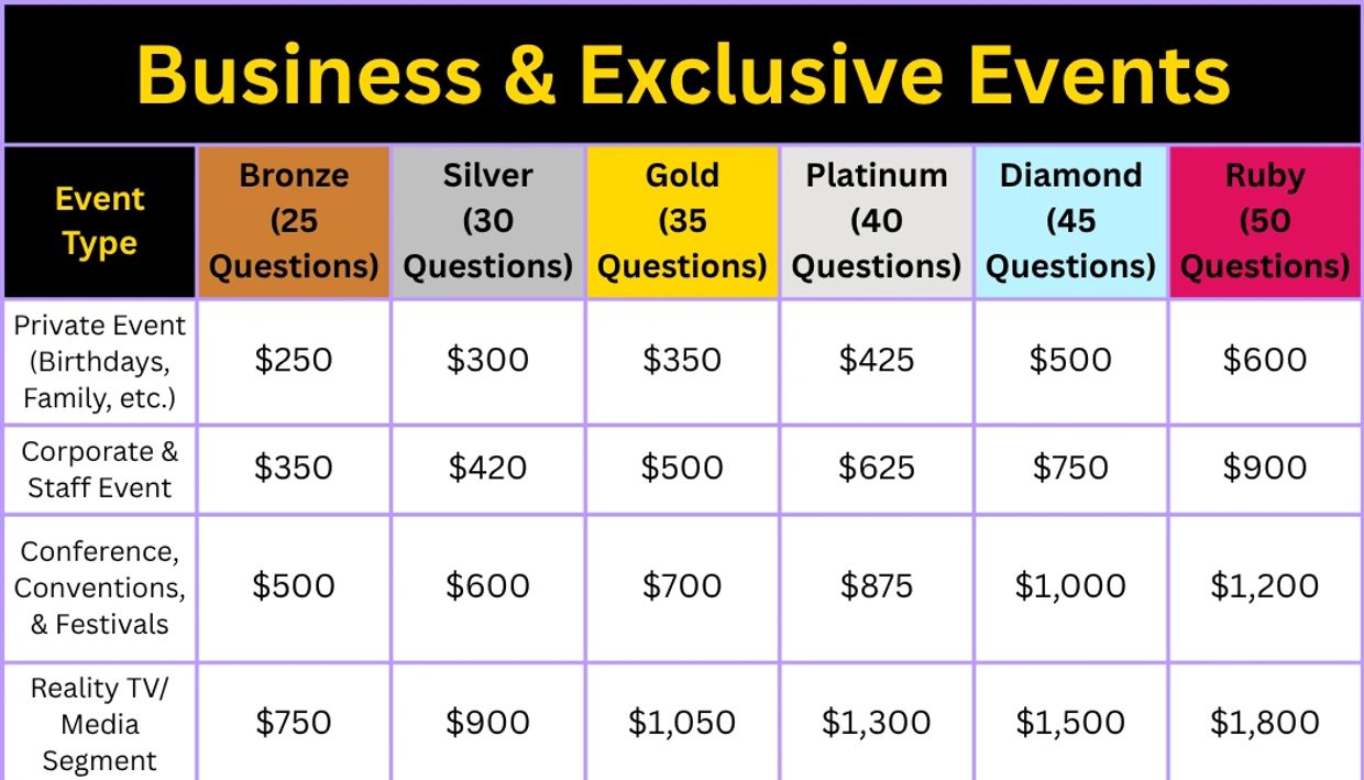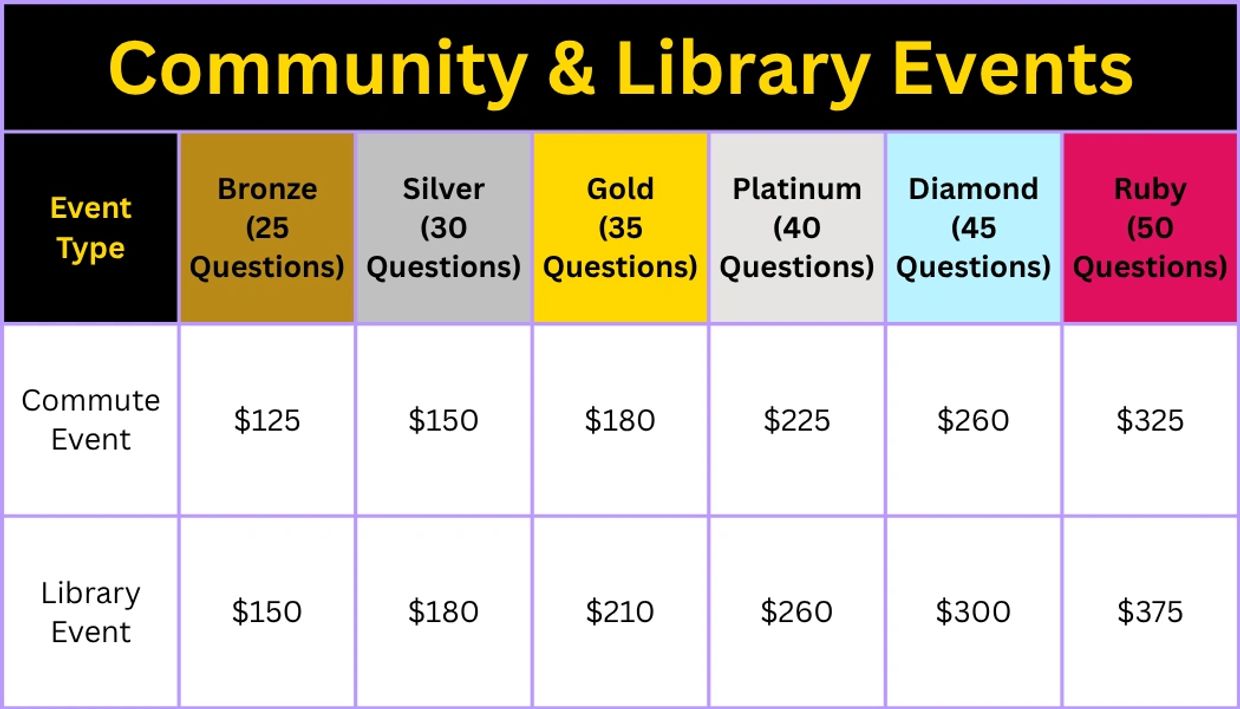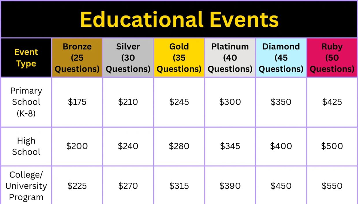 Whether you want to educate, engage, or entertain, our Black history trivia offers a unique and enriching experience for schools, businesses, and communities. The official packages are down below.